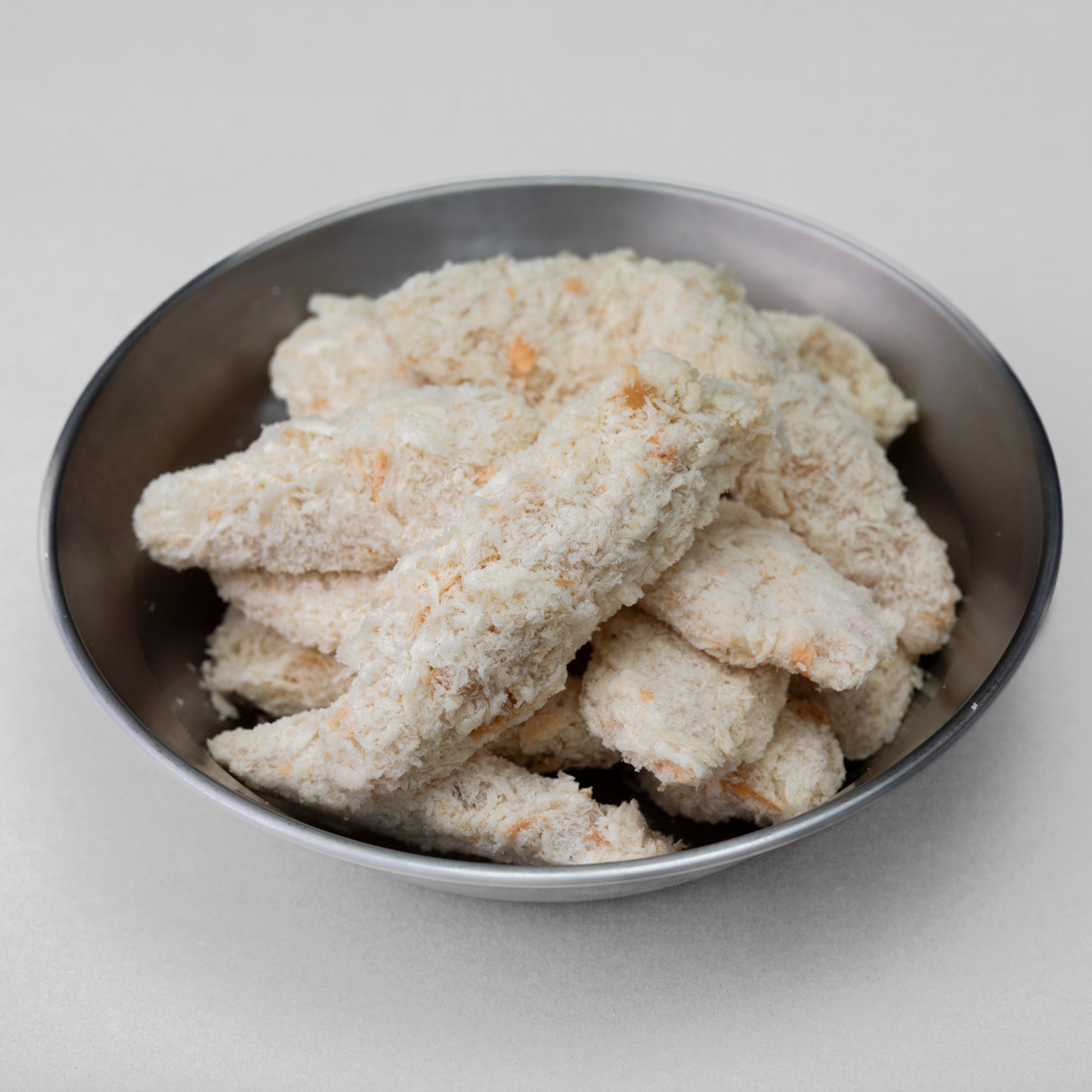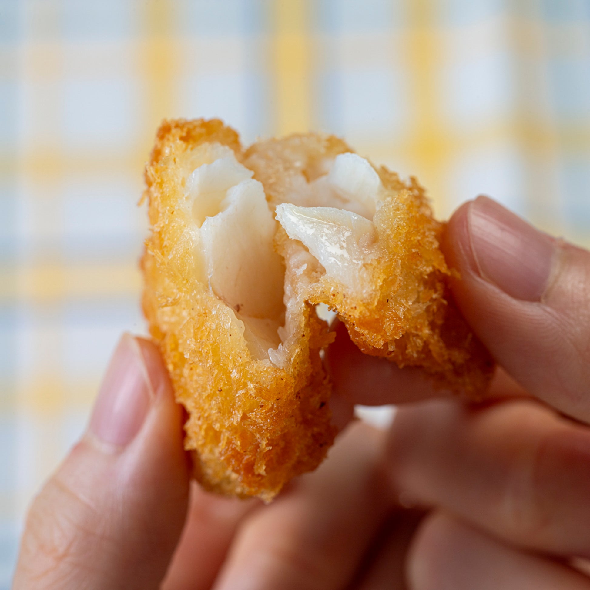 原材料名: 真鱈(岩手県産)、衣(パン粉(小麦・大豆を含む)、小麦粉、でん粉、粉末状大豆たん白、食塩)/加工でん粉、増粘多糖類